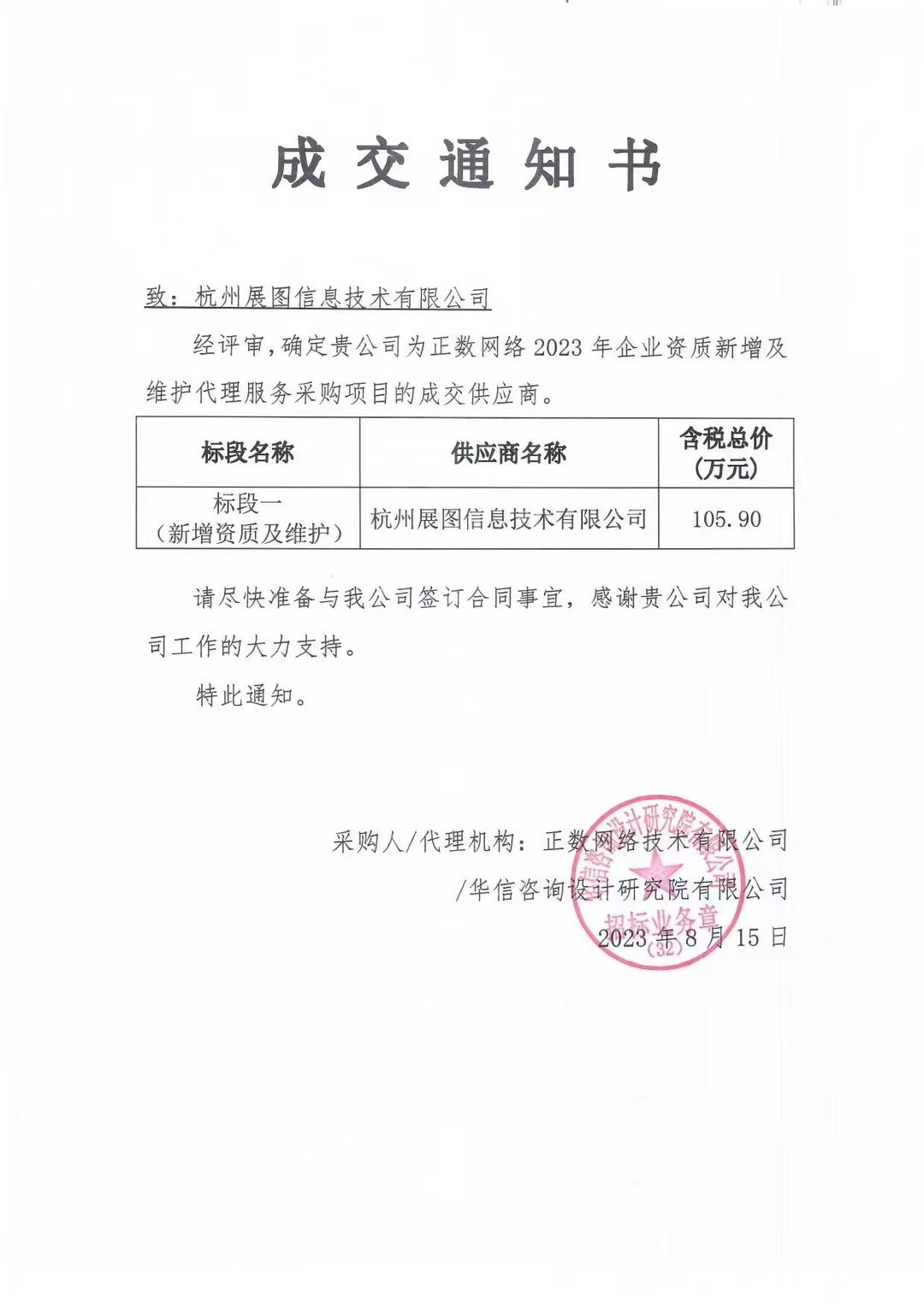 近日杭州展圖信息技術(shù)有限公司在正數(shù)網(wǎng)絡(luò)技術(shù)有限公司資質(zhì)新增認(rèn)證咨詢(xún)服務(wù)項(xiàng)目招標(biāo)項(xiàng)目的競(jìng)標(biāo)中,憑借良好的服務(wù)意識(shí),過(guò)硬的產(chǎn)品質(zhì)量,扎實(shí)高效的工作作風(fēng),卓越的運(yùn)作團(tuán)隊(duì)和良好的企業(yè)信譽(yù),以絕對(duì)優(yōu)勢(shì)順利中標(biāo),標(biāo)的總金額105萬(wàn)。